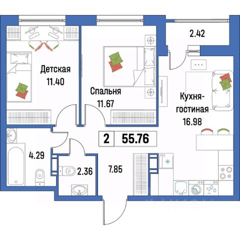 5,5 м² — маленькое, но своё личное пространство: под детскую, кабинет или даже мини-гардеробную.