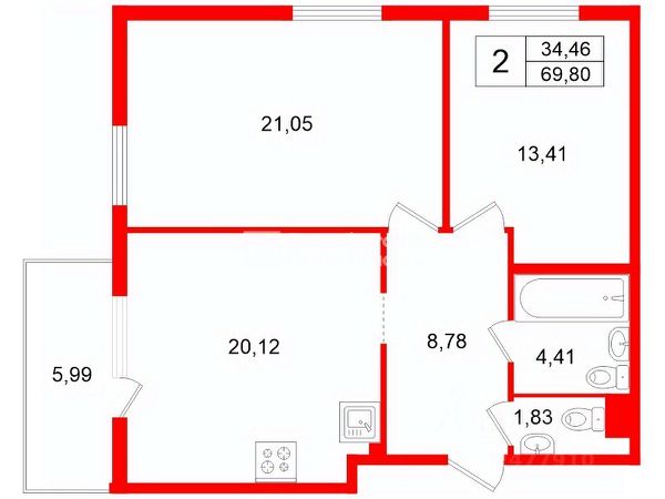 Уникальное предложение! В продаже светлая двухкомнатная двухсторонняя квартира, общей площадью 53.7 м2, у залива, с видом на парк 300-летия Санкт-Петербурга, по адресу: Приморский пр-т, д. 143, корп. 2.