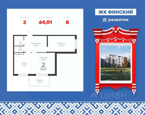 Дом сдан. Ключи сразу. Ипотека с господдержкой. родается большая двухкомнатная квартира. Это жилье, общая площадь которого составляет 77 м2, а жилая - 32.8 м2, прекрасно подойдет семейным покупателям. Очень просторная кухня (14.6 м2) порадует и кулинаров, и любителей семейных чаепитий. К кухонному помещению примыкает панорамная лоджия, откуда открывается прекрасный вид. Комнаты изолированы, в обеих - большие окна с двухкамерными стеклопакетами. В большой прихожей хватит места не только для входной зоны, но и для платяных шкафов. Раздельный санузел расположен в центре квартиры, что удобно для всех жильцов. Жилой комплекс окружает закрытый охраняемый двор, система видеонаблюдения четко фиксирует все происходящее. На благоустроенной территории высажены деревья и кустарники, оборудованы детские и спортивные площадки, устроены зоны для отдыха и активностей. ЖК построен по монолитной технологии, гарантийный срок службы здания - 150 лет. Дом уже сдан и заселяется, ключи выдаются сразу. Возможен заказ чистовой отделки, подробности - в отделе продаж. Проект имеет хорошую транспортную доступность. До станции подземки "Парнас" - порядка 900 м. Рядом - выезды на автомагистрали, в том числе КАД, по которым легко добраться в разные районы города. Микрорайон расположен отдельно от массовой застройки, при этом имеет развитую инфраструктуру: поликлиники и аптеки, садики и школа, кафе и спортклубы. Немало здесь и магазинов (в том числе - новый торговый центр прямо на территории), а в 10 минутах езды работает ТРЦ "Мега Парнас". Жемчужина Выборгской стороны и наследия ЮНЕСКО - бывших Шуваловских угодий - находится через дорогу. В 20 минутах езды находится всесезонный курорт "Охта-Парк", примерно столько же - до Суздальских озер, а меньше чем за час можно добраться до Карельского перешейка.