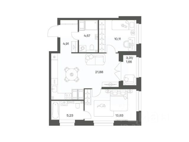 Продается квартира площадью 53.14 м² на 15 этаже 2 секции в Речной квартал от компании ГК "ТРЕСТ". Площадь кухни 15.66 м². Семейный жилой комплекс комфорт-класса "Речной квартал" от Группы компаний "ТРЕСТ" расположен в Невском районе Петербурга на пересечении Октябрьской набережной и Русановской улицы. Первая очередь квартала состоит из трёх корпусов, расположенных лучеобразно, чтобы максимально использовать естественное освещение и обеспечить видовые точки на локацию. Проект выделяется современными архитектурными решениями и дизайном. Концепция развития и благоустройства придомовой территории разделена на зоны отдыха, досуга и игровые площадки с учетом возраста и потребностей детей и взрослых. Квартал рассчитан на семейных покупателей, поэтому здесь нет студий: только одно-, двух- и трёхкомнатные квартиры. В проекте представлены квартиры с кухнями-гостиными, мастер-спальнями, гардеробными и кладовыми. "Речной квартал" - современный жилой комплекс с разнообразным благоустройством придомовой территории, просторными европланировками, закрытой охраняемой территорией и подземными паркингами. На территории комплекса уже функционирует детский сад на 110 мест. Также в квартале будет построена общеобразовательная школа на 475 мест с бассейном и стадионом. Открытие школы запланировано на 2029 год. Квартиры в ЖК "Речной квартал" можно приобрести с готовой отделкой от застройщика. Для покупателей квартир предусмотрено два варианта чистовой отделки "Ваниль" и "Шоколад". Чистовая отделка в квартирах ЖК "Речной квартал" предполагает монтаж натяжных потолков, укладку ламината, оклейку стен обоями под покраску, установку светильников и межкомнатных дверей. При отделке новой квартиры применяются качественные, натуральные и экологичные материалы, монтируется стильная импортная сантехника европейских брендов. В объявлении указана стоимость квартиры при 100% оплате. При других формах оплаты - базовую стоимость квартиры уточняейте на официальном сайте компании или у менеджера отдела продаж. Застройщик АО "Специализированный застройщик "Строительный трест".