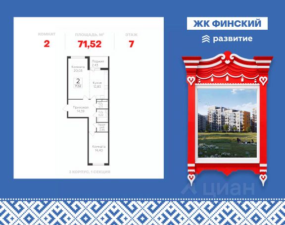 Продается 2-комнатная квартира 56,05 кв.м. на 2 этаже. В продаже квартира в жилом комплексе комфорт-класса "Финский квартал". Проект расположен во Всеволожском районе, в деревне Лупполово — всего в 9 км от КАД и 25 минутах до станций метро "Парнас", "Проспект Просвещения" и "Озерки". Локация сочетает тишину и природу с доступностью города: жилой комплекс окружён озерами, лесами и Лахтинским парком, при этом вся необходимая инфраструктура и транспорт — рядом. Это формат жизни на природе без отказа от привычного городского комфорта. В состав комплекса входят 6 домов средней этажности (69 этажей), объединённых приватным дворовым пространством с озеленением, прогулочной аллеей и зонами отдыха. Проект реализует федеральный застройщик ГК "Развитие". Транспортная доступность На автомобиле: • 25 мин до метро "Парнас" и "Проспект Просвещения" • 9 км до КАД • 30 мин до центра Санкт-Петербурга Архитектура Современная среднеэтажная застройка с увеличенными расстояниями между корпусами создаёт ощущение простора и уединённости. Фасады выполнены в лёгкой скандинавской стилистике, увеличенные окна и остеклённые лоджии наполняют квартиры светом и открывают виды на природу. Планировочные решения Более 60 вариантов планировок площадью от 22 до 79 м² — от студий до семейных квартир. Доступны форматы с кухнями-гостиными, мастер-спальнями, гардеробными и двумя санузлами. Отдельный формат — квартиры с террасами до 70 м² на верхних этажах. Все квартиры сдаются с предчистовой отделкой, что позволяет сократить сроки ремонта. Также доступны варианты чистовой отделки "под ключ". Благоустройство -закрытый двор без машин, -ландшафтное озеленение и прогулочная аллея, -детские и спортивные площадки для разных возрастов, -зоны отдыха и общения, -мягкая вечерняя подсветка, -безбарьерная среда, -парковка по периметру комплекса. Окружение -северные леса, экотропы, пляжи и зоны отдыха, -Лахтинский парк с прогулками, рыбалкой и активным отдыхом, -горнолыжные комплексы и загородные активности в доступности, -супермаркеты "Дикси", "Магнит", кафе — в шаговой доступности, -торговые центры, аптеки, больница, медцентр и фитнес — в Сертолово (1020 минут), -крупные ТЦ у КАД: "Мега Парнас", "Гранд Каньон", "Китай-город", -начальная школа, детский сад и Монтессори-центр — рядом, -до новой школы — организован школьный автобус.