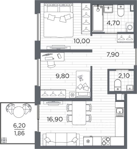 • ✅ Минимальная площадь: 41,2 м²