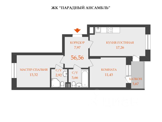 Для удобства жильцов 3 лифта, в том числе и грузовой. В корпусе три входа в парадную, спуск в подземный паркинг, колясочная, места для хранения.