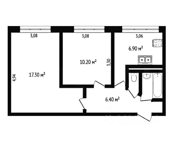 -РАЗДЕЛЬНЫЙ санузел (2.6 и 1.0 м2)