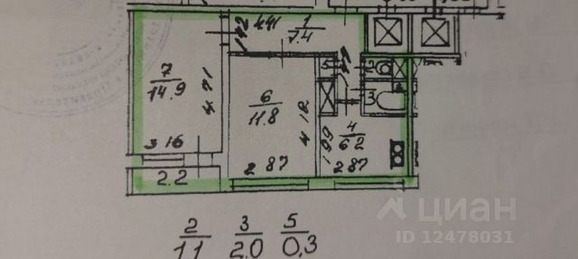 Кухня 17,2 метров. Раздельный санузел. Хорошие комнаты 11,7 м и 13.7 метров .