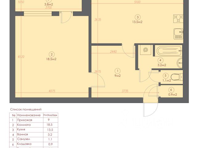 • Коридор: 4,5 м². Есть место для вместительного шкафа-купе.