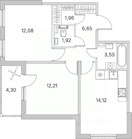 Просторная кухня-гостиная (17,13) и две изолированные комнаты (14,18 и 12,43)— идеальное решение для семьи. Два совмещенных санузла (с ванной и душевой) для вашего удобства, лоджия (3,67) с французским остеклением (от потолка до пола).