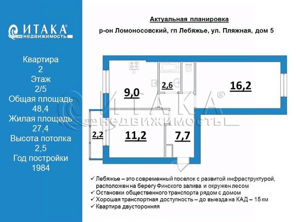 Продаётся двухкомнатная квартира общей площадью 56 кв. м. в деревне Горбунки, дом 20, Ломоносовский район, Ленинградской области. Произведен косметический ремонт. Про квартиру: Квартира 56 кв. м расположена на 4/5 этаже панельного дома. Просторная кухня 8,4 кв.м. Две комнаты правильной формы 17.4 и 15.5 кв.м. Широкий коридор с кладовым помещение, что дает возможность организовать дополнительные места для хранения. И раздельный сан.узел. Про инфраструктуру: В шаговой доступности есть вся необходимая инфраструктура для комфортной жизни: магазины, пункты выдачи, аптеки. Рядом находится спортивный комплекс с бассейном, Администрация поселения, Почта РФ, поликлиника. До м. Проспект Ветеранов чуть более 20 минут, до КАДа около 5 минут. Так же есть автобусное сообщение с городами Ломоносов и Петергоф. Красивый, тихий и безопасный район с обилием зелени. Это идеальная локация для тихой и спокойной жизни. Про условия продажи: Один взрослый собственник. Прямая продажа. Отсутствуют ограничения и обременения. Номер объекта: #1/537061/24690 Продается 2-комнатная квартира на вторичном рынке в Ломоносовском районе Ленинградской области.