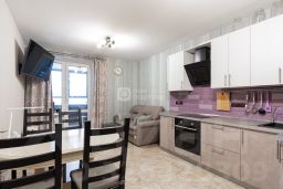 Квартира расположена на 5 этаже 19-ти этажного дома, просторная планировка предусматривает две спальные комнаты, 20 кв м и 17 кв.м., кухню-гостиную 46 кв м, санузел 2.56 кв.м., ванную комнату 3,9 кв.м., лоджию 7,6 кв.м.