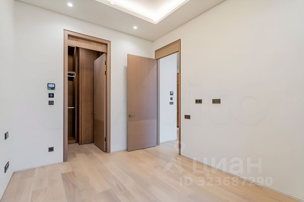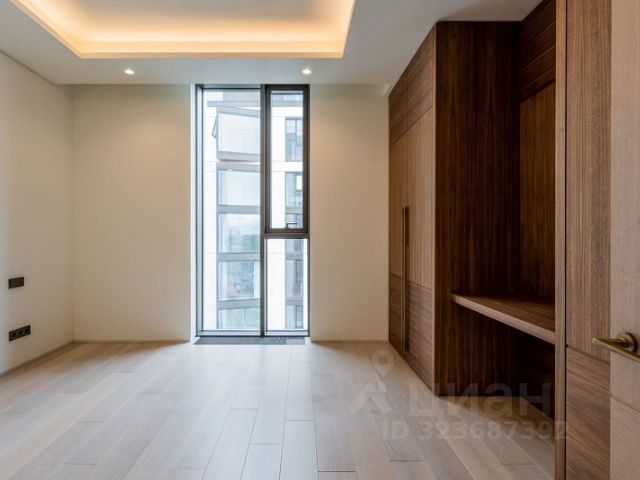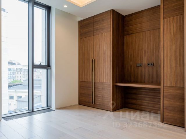 Вид из окон на восток во двор-сад с фонтанами, где высажено 1.500 растений. Абсолютно тихо. Окна высотой 2,6 м, с энергосберегающим стеклопакетом и анодированным алюминиевым профилем цвета бронзы. Стены итальянская штукатурка и специальные обои под роспись. Полы из инженерной доски, белёный дуб без плинтусов. Входные двери, с замком Yale, и межкомнатные двери, высотой 2,5 м, с отделкой из орехового шпона и вставками из тёмного дуба. Порталы дверей из дубового шпона. Гардеробная комната с встроенными шкафами на полную высоту стен с внутренней подсветкой, отделанные тонированным ореховым шпоном. Потолок 3,0 м. Уникальный подиум у окна - место для расслабления и медитации.