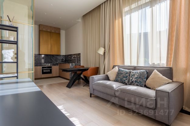 2-х комнатная квартира в элитном ЖК "One Trinity Place" с эффектной планировкой: 1 изолированная спальня, зона гостиной и кухни, 1 с/у, гардеробная.