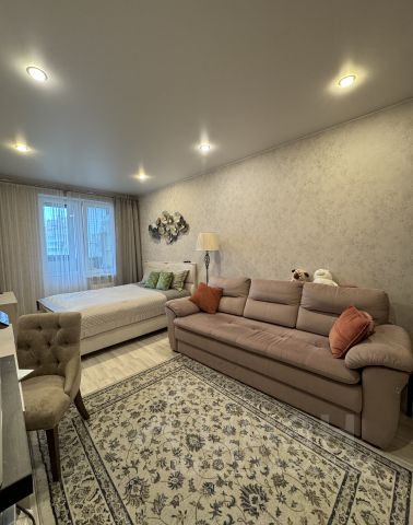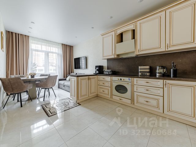 Потолок в комнатах с зонированной подсветкой. Подключение к теле антенне - в каждой комнате и на кухне. Есть городской телефон.