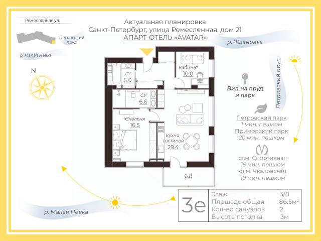 Лот: 95264. Квартира БЕЗ обременений в новом жилом комплексе на Петровском острове рядом с парком. Внутренняя закрытая территория с ландшафтным дизайном и детскими площадками. Местом прогулок жителей комплекса станет благоустроенная набережная, исполненная по уникальному проекту с озеленением и устройством малых архитектурных форм. Светлая двусторонняя квартира евро-3, с окнами на северо-восток и юго-запад. От собственника, без обременений, прямая продажа. Здание 8 этажей , квартира на 5м этаже. 4 квартиры на этаже. Большие окна наполняют квартиру светом. Кухня с лоджией в сторону Малой Невы, выделена рабочая зона и зона отдыха. Два сан-узла, которые можно соединить в один. Безбарьерная среда к лифту на этаж, что удобно для мам с колясками и инвалидов. Рядом расположены магазины, салоны, кафе с утренними кофе и булочками, знаменитая спортивная школа Жемчужина, новая общеобразовательная школа в пешей доступности. Общественный транспорт до станций метрополитена Чкаловская или Крестовский остров, Спортивная. Быстрый выезд на ЗСД через мост Бетанкура. 2-комнатная квартира (вторичка) на улице Ремесленная в Санкт-Петербурге.