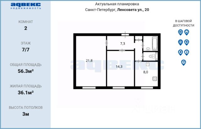 Арт. 98411744 Продается светлая, стильная 2-комнатная квартира, полностью готовая для проживания, в одном из самых престижных районов города - Московском (подробнее о районе - ниже). Характеристики квартиры / дома: 5 этаж 5-этажного дома, 55,7 м2, окна на две стороны - во двор и на улицу Ленсовета Сделана перепланировка с архитектором-дизайнером, за счет этого удалось высвободить больше полезной площади, а также создать дополнительные места для хранения Лаконичный дизайн в скандинавском стиле с мебелью Ikea - спокойные цвета, нет загромождения мебелью, много воздуха и пространства, квартира выглядит очень просторной, несмотря на небольшой метраж, при этом очень светлая Не угловая (тепло), комнаты раздельные (приватность), санузел совмещенный (больше места, есть и большая ванна, и душевая), светлые тона и много естественного освещения Два (!) балкона: один в мастер-спальне - вдохнуть воздух улиц и ощутить пульс города, другой в малой спальне (детской или кабинете) - для медитаций и отдыха в рабочие перерывы ) Просторная кухня с рабочей поверхностью перед большим окном (хорошо освещена), современной мебелью Ikea и всей необходимой техникой, при необходимости войдет небольшой диван (дополнительное место для отдыха или спальное) Мастер-спальня с собственной гардеробной и балконом (вид на улицу) Вторая спальня (может быть детской или кабинетом при желании) тоже с балконом (вид во двор) Чистый отремонтированный подъезд, хороший ТСЖ Однородная социальная среда, приятные соседи, безопасность Перед домом ухоженный двор, большое количество деревьев под окнами Характеристики района / инфраструктуры: Главным плюсом объекта является локация. В шаговой доступности - вся развитая инфраструктура Московского района с множеством магазинов, ресторанов и баров, и одна из главных доминант района - Московская площадь с фонтанами и зонами отдыха. Рядом с домом хорошие школы, детские сады и все необходимое для комфортного проживания. Место очень спокойное, респектабельный район и адекватные жители, много мест для парковки и зеленых зон. Расстояния: Пешком: до метро "Московская" и храма Рождества святого Иоанна Предтечи ("Чесменский") - 5 минут (500 м) На машине: до съезда с ЗСД на Благодатной улице - 11 минут (4 км), до центра города (Исаакиевский Собор по прямой по Московскому проспекту) - 30 минут (11 км), до Московского Парка Победы - 10 минут (4 км), ТРК "Питер Радуга" - 9 минут (3 км), СКА "Арена" - 6 минут (2 км), до аэропорта Пулково - 15 минут (10 км). ============== Московский район Санкт-Петербурга имеет множество преимуществ, которые делают его привлекательным для жизни, работы и отдыха. Вот некоторые из них: 1. Развитая инфраструктура: здесь расположены крупные торговые центры, магазины, рестораны и кафе, а также образовательные учреждения (школы, детские сады и ВУЗы) и культурные и развлекательные объекты (театры, кинотеатры и спортивные комплексы). 2. Транспортная доступность: район хорошо связан с другими частями города благодаря развитой сети обще Продам 2-комнатную квартиру (вторичка) на улице Ленсовета в Санкт-Петербурге.