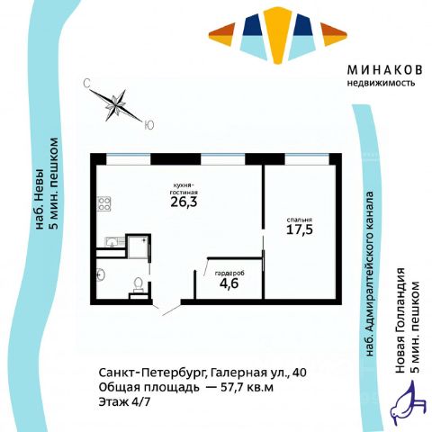 Арт. 113427964 Йога и легкий завтрак в Новой Голландии, потом прогулка по набережной Невы. Обед с друзьями в панорамном ресторане у Исаакия. А вечером - в Мариинку на премьеру! Как вам такой план? Идеальная квартира выходного дня, в новом доме в лучшем месте Петербурга - на уютной и тихой Галерной улице, центре культурной жизни. Большие окна выходят в тихий двор, в сторону Галерной. Летом здесь нет жары из-за солнца, нет шума улицы - зато красивый вид на перспективу крыш и небесную линию Петербурга. В квартире остается все наполнение, поэтому можно приехать и наслаждаться отдыхом сразу после сделки. Сейчас за квартирой присматривает опытная и надежная управляющая компания - с ее помощью можно будет быстро сдать квартиру в аренду и начать получать доход. ЖК Голландия - современная реконструкция дома-памятника начала 20 века. Полный капитальный ремонт выполнен в 2016 году. Роскошные фасады в стиле модерн, резные дубовые двери, метлахская плитка и стильный фарфор в парадных - и при этом новейшие инженерные коммуникации, современные бесшумные лифты, теплый подземный паркинг и железобетонные перекрытия. От дома до метро Адмиралтейская или Садовая - полчаса пешком, а на автобусе или троллейбусе можно быстро попасть на Невский и от него в любую точку города. Всё готово к сделке. Один взрослый собственник. Полное сопровождение сделки компанией Минаков недвижимость. Звоните, чтобы записаться на просмотр!