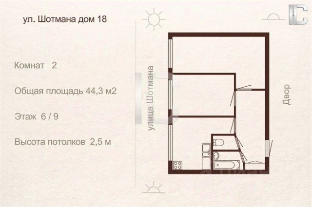 В квартире раздельный санузел , окна квартиры выходят во двор и на улицу.
