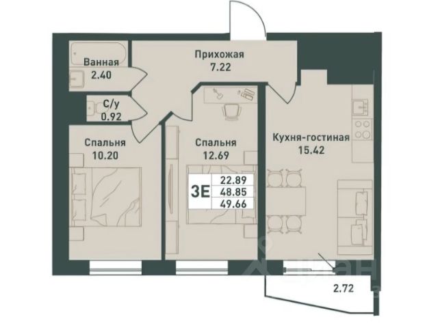 • ✓ В базе Циан 15 2-комнатных квартир.