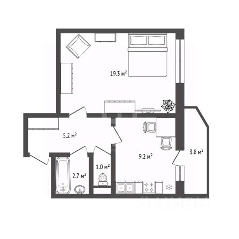 Простор и гармония — 54,6 м², 2 изолированные комнаты (17,5 и 13,5 м²) для семьи, пары или тех, кто ценит личное пространство.