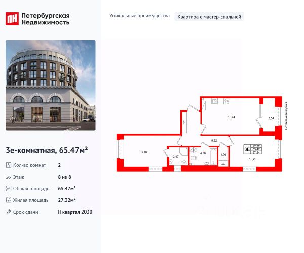 Продается просторная 2-комнатная квартира от застройщика в жилом комплексе "Аристократ" в уютном Василеостровском районе. До метро можно добраться пешком всего за 10 минут. Мастер-спальня с собственной ванной комнатой. Самое приватное пространство в вашей квартире. Уникальная, функциональная европланировка, большая кухня-гостиная 19.15 м², просторная прихожая 8.36 м². Общая площадь квартиры - 65.35 м², жилая 28.84 м², высота потолка 2.7 м. Квартира продается с отделкой "Норд Лайн бизнес". Что особенного в ЖК "Аристократ"? • Премиальная отделка квартир - Норд Лайн бизнес • Васильевский остров - историческая локация с современными культурными кластерами • Индивидуальный облик каждого корпуса в единой архитектурной концепции • 7 парадных лобби с потолками до 7-ми метров • Цветущие сады, зеленые гостиные, фонтаны • Клуб резидентов "Аристократ": фитнес-клуб, коворкинг, гостиная с роялем, детский центр с кинотеатром • Технологичная среда на территории, в доме и в квартире