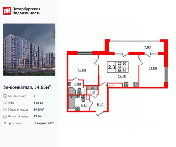 Продается уютная 2-комнатная квартира от застройщика в жилом комплексе "Бионика Заповедная" в динамичном Приморском районе. До метро можно добраться на транспорте всего за 11 минут. Мастер-спальня с собственной ванной комнатой. Самое приватное пространство в вашей квартире. Уникальная, функциональная европланировка, большая кухня-гостиная 17.55 м², вместительная прихожая 7.45 м². Общая площадь квартиры - 56.2 м², жилая 23.2 м², высота потолка 2.77 м. Квартира продается с отделкой "NORD LINE WHITE ВК NEW". Что особенного в ЖК "Бионика Заповедная"? • Оазис в городе 3 минуты пешком до Новоорловского заказника (140 ГА) • Захватывающие виды из окон на хвойный лесопарк • Всесезонный "Заповедный парк" во дворе площадью 23000 кв.м. • 5 единых входных групп с авторским дизайном и лаундж-зонами, сити-виллы на первых этажах с палисадниками и высотой потолков до 4 м • Места притяжения: фонтан "Бионика", спортивный кластер со скейт-парком, фотозоны с арт-объектами