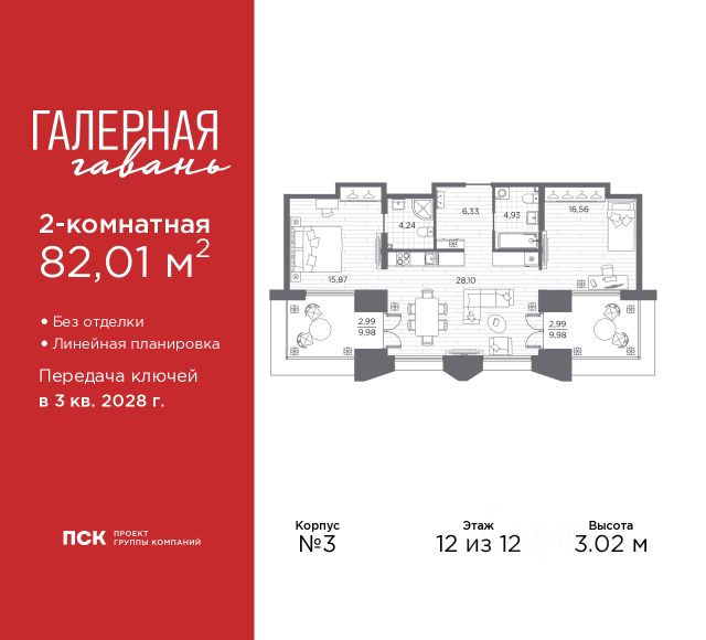Просторная двухкомнатная квартира в ЖК "Галерная гавань" на 2 этаже. Квартира без отделки, новый владелец может сделать ремонт по своему дизайн-проекту. Общая площадь: 62.74 кв.м., жилая: 27.42 кв.м., площадь просторной кухни-столовой: 21.09 кв.м. Угловая квартира, очень светлая, естественная вентиляция при открытии окон. В квартире один совмещенный и один раздельный санузел. Высота потолков 3.02 м. "Галерная гавань" — это жилой комплекс бизнес-класса в исторической части Васильевского острова — на берегу Галерной гавани, ведущей свою историю с 1724 года. В свою очередь, исторический Васильевский остров это университеты, школы, детские сады, поликлиники, несколько станций метро и прочая инфраструктура без проблем с транспортной доступностью. В "Галерной гавани" шесть корпусов на 813 квартир, площадью от 29,5 до 134 кв.м. Высота потолков 3 м. Два корпуса из шести всего на 20 квартир. На верхних этажах расположатся квартиры с большими террасами и панорамным остеклением. Также есть квартиры с французскими балконами и мастер-спальнями. Четыре квартиры из каждых пяти с видами из окон на тихую воду, на старые и новые городские символы. Паркинг займет весь подземный объем квартала, и будет вмещать 606 автомобилей. Фасады "Галерной гавани" выполняются в стиле баварской кирпичной кладки, с акцентами из керамогранита графитового оттенка. Объемы задаются ризалитами с художественной подсветкой. Для жителей будет создан комьюнити-клуб с переговорной и библиотекой, кинозалом, кофе-поинтом, детской комнатой с пространством для мастер-классов, фитнес-зоной, а также бьюти-кабинетом. "Галерная гавань" — это также первый в Петербурге жилой комплекс с общественным пространством у воды. ГК "ПСК" восстановит десять исторических зданий, в которых расположатся рестораны, кафе, фитнес-клуб с бассейном, культурное пространство, театр и офисы. При этом набережная будет превращена в пешеходную, в территорию общественного пространства. #269cVC