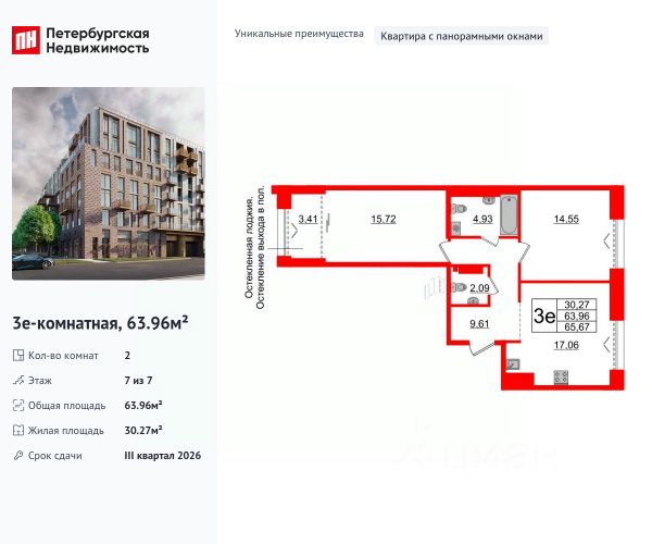 Продается просторная 2-комнатная квартира от застройщика в жилом комплексе "Imperial Club" в уютном Василеостровском районе. До метро можно добраться на транспорте всего за 7 минут. Окна от пола до потолка позволят безгранично любоваться видами Петербурга, наполнят комнату солнцем и светом! Уникальная, функциональная европланировка, большая кухня-гостиная 17.41 м², просторная прихожая 9.61 м². Общая площадь квартиры - 64.8 м², жилая 30.27 м², высота потолка 3 м. Квартира продается c черновой отделкой. Что особенного в ЖК "Imperial Club"? • Парадные виды на Большую Неву и Английскую набережную • Изысканная архитектура жилого комплекса. • Уникальное благоустройство. • Двухуровневые входные группы. • Панорамные окна, открытые террасы, вантовые балконы. • Двухэтажные сити-виллы с патио, квартиры с возможностью обустройства камина и зимнего сада с растениями. • Просторный фитнес-центр с бассейном и спа-зоной на первом этаже . • Премиальный сервис: заказ такси,выгул собак, уборка, доставка вещей .