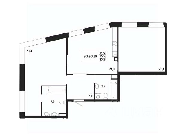 ✓ Минимальная цена: 44,3 млн ₽, максимум: 121,3 млн ₽