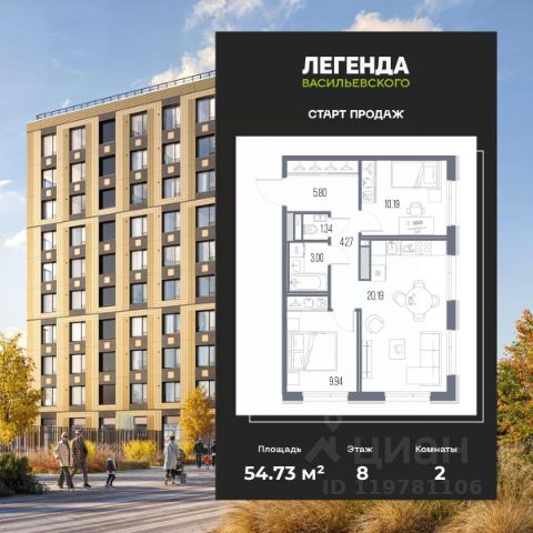 Просторная 2-комн. квартира с предчистовой отделкой в ЖК "ЛЕГЕНДА Васильевского" на 6 этаже. Общая площадь: 57.95 кв.м. Высота потолков 2.7 м. "ЛЕГЕНДА Васильевского" жилой квартал в минутной доступности от Финского залива, главного креативного хаба Санкт-Петербурга Севкабель Порта и других точек притяжения. Современные инженерные и технические решения, повышающие качество жизни TechnoBox включают в себя: стационарный и удаленный контроль дома, систему вентиляции Air Design - здоровое дыхание без лишнего шума, мультисервисную сеть, объединяющую коммуникационные системы, удаленное управление электроприборами, контроль отопления в каждом помещении, поддерживающий оптимальный температурный баланс во время "холодного" периода", датчики протечки, датчик открытия входной двери. Мультисервисная сеть (МСС) объединяет ключевые слаботочные системы дома, задавая им единый высокий стандарт работы, обеспечивая надёжность их функционирования и управления. Квартира готова к декорированию. Застройщиком сделана шумоизоляция; стены подготовлены для отделки; проведена электрика с учетом рекомендаций по расстановке мебели и бытовой техники; выровнен пол. В каждой квартире установлена взломостойкая входная дверь, окна со специальным термоизолированным алюминиевым профилем. Двор жилого комплекса "ЛЕГЕНДА Васильевского" закрыт. Проект состоит из шести разноформатных корпусов с ритмичными фасадами в духе пост-конструктивизма. Геометрия жилого комплекса состоит из четко простроенных осей, чередующих открытые пространства и объемы корпусов, каждый из которых обладает своим визуальным кодом индивидуальным рисунком фасада и цветовой палитрой. Корпуса образуют периметр с общественными пространствами: площадью с кафе, магазинами и пешеходным променадом с детскими игровыми хабами, местами для спокойного отдыха и workout-зоной. На территории комплекса предусмотрены теплый подземный паркинг и два наземных 4-х этажных паркинга.