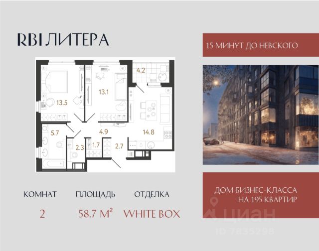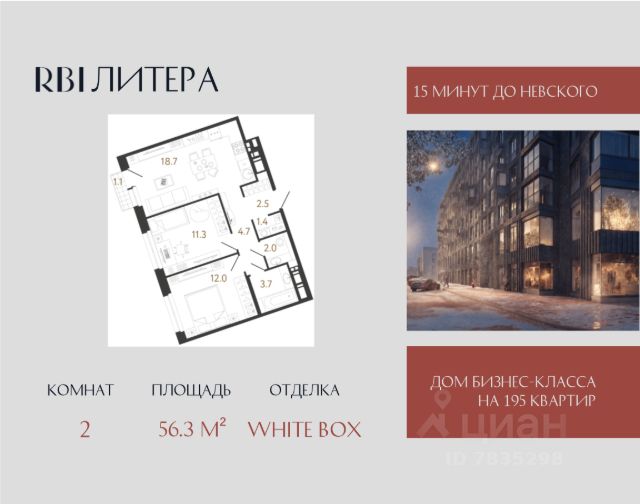Клубный дом "Литера" от RBI. Новая "Литера" вашей жизни Камерный проект бизнес-класса на 195 квартир строится в 6 минутах от метро "Елизаровская" в непосредственной близости от исторического и делового центра Петербурга. Дом располагается в 700 м от набережной Невы по Большому Смоленскому проспекту: встречать рассветы и провожать закаты, наслаждаясь захватывающей панорамой города и зелёным окружением Невского района, можно из окон собственной квартиры! До Московского вокзала и центральной части Невского проспекта — 15 минут с учётом пешей прогулки до "Елизаровской" от дома. Добраться на автомобиле можно за то же время. До аэропорта "Пулково" 23 км. Дом состоит из двух 12-этажных секций, которые располагаются друг напротив друга, и ещё двух 8-этажных. Вместе секции образуют букву "Л" — форма дома отсылает к его названию. Планировки — от студий до просторных евро-четырёхкомнатных. Площадь квартир — от 24 до 121 м², высота потолков на типовых этажах — 2,8 м. На верхних этажах располагаются квартиры с террасами. Для романтиков — квартиры с эркерами. Для ценителей функциональных планировок — квартиры с выделенной рабочей зоной кухни и большой гостиной-столовой, планировки с мастер-спальнями и гардеробными. Ритмичную архитектуру в стиле лофт дополняют характерные "литеры" эркеров. Основной объём внешних фасадов из красного кирпича обеспечивается за счёт фламандской 3D-кладки и декоративных рустов. Со двора фасады выполнены в светлых тонах — чтобы усилить ощущение простора и безопасности. Единая дизайн-концепция продолжается в лобби дома. Сочетание тёплого кирпича с холодным металлом и стеклом создаёт харизматичное, брутальное настроение интерьера парадной группы. Чёткость вертикальных объёмов смягчается округлыми формами стойки ресепшн и декоративных куртин, а большие витражные окна создают иллюзию бесконечности пространства. Придать мыслям стройную форму можно будет в специально оборудованной зоне коворкинга только для жителей. Здесь же в лобби со свободным Wi-Fi появится зона ожидания для гостей и уникальный арт-объект от Владимира Абиха. Диптих из объёмных оттисков друг друга при наложении образует единое целое и запечатывает в себе фразу "Между нами". Эта инсталляция — метафора общности между нами, воплощение в искусстве объективной истины о том, что хотя вокруг много людей, лишь с немногими ощущаешь неподдельную связь и самого себя кем-то цельным. Вход на приватную территорию — по электронному ключу бесконтактного доступа. Во дворе высадят взрослые деревья и цветущие растения, оборудуют зону для занятий спортом, места отдыха для взрослых и экологичную детскую площадку с развивающими элементами для малышей и подростков. Двор без машин — можно отпускать детей на прогулки и не переживать за их безопасность. Для жителей оборудуют тёплый подземный паркинг, велопарковки и колясочные. На охраняемой территории у дома появится гостевая стоянка. Дом "Литера". Для авторов своей жизни