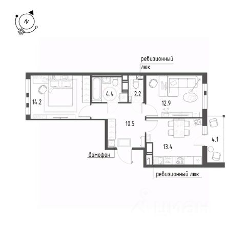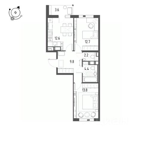 Комнаты 13,9+ 12,8 м2