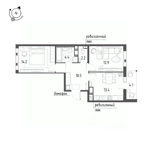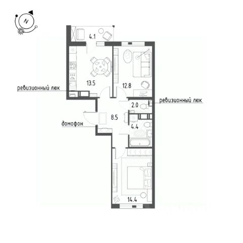 Кухня-гостиная 13,1 м2.
