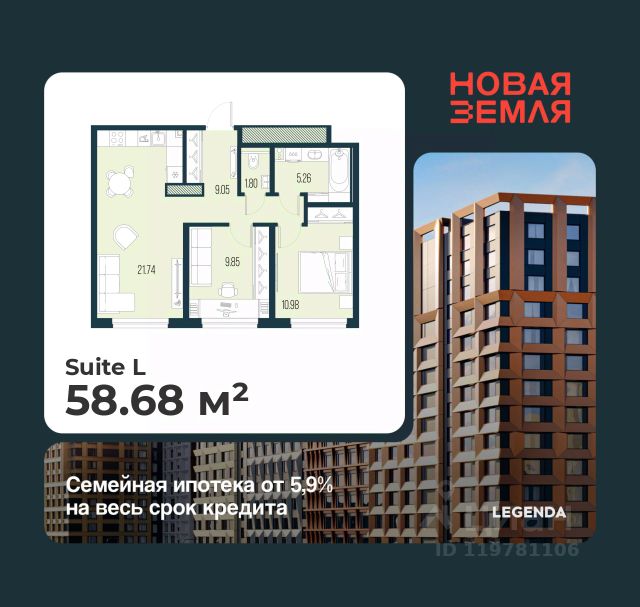 2-комн. квартира от застройщика с предчистовой отделкой в ЖК "Новая Земля" на 4 этаже. Общая площадь: 56.91 кв.м., жилая: 21.29 кв.м., площадь просторной кухни-столовой: 21.4 кв.м. Квартира угловая, идеально подойдет любителям тишины и панорамных видов. В квартире один балкон, один совмещенный и один раздельный санузел. Терраса представляет собой роскошную зону отдыха, где вы на свой вкус можете создать атмосферу комфорта и уюта. Высота потолков 2.85 м. Квартира находится в корпусе 1.5. Дом монолитный, одноподъездный, высотой 17 этажей. На этаже 12 квартир. В подъезде 1 пассажирский и 1 грузовой лифт. Окончание строительства - 4 квартал 2028 года. Оформление сделки по договору долевого участия. Новая Земля — проект LEGENDA в локации морской набережной Васильевского острова, где уже сегодня формируется многообещающее и перспективное место для жизни и инвестиций. Проект состоит из двух очередей, расположенных в непосредственной близости, но имеющих идеологически разный подход к проектированию и ассортиментному предложению. Первая очередь, где квартиры уже в продаже, наполнена компактными функциональными и эстетичными сьютами в комплектации TechnoBox, подходящими для активной аудитории, предпочитающей больше времени проводить в городе. Транспортная доступность обеспечена благодаря близости выезда на ЗСД, который позволяет быстро добраться как до центра города, так и до других районов Санкт-Петербурга. Архитектурная концепция проекта задает новый стандарт для этой локации. Дизайн фасадов, большие окна без импостов, современные инженерные решения — всё это создаёт атмосферу комфортного и эстетичного пространства, отвечающего самым высоким требованиям. В проекте представлена новая линейка планировочных решений, созданных по принципам отельного проектирования. Сьюты от LEGENDA — это уникальная работа с пространством, сочетающая сверхфункциональность и удобство, чистоту линий и стилистический минимализм. Планировочные решения в рамках первой очереди проекта будут поделены на несколько сегментов, отличающихся размерами, функциональной наполненностью и отвечающих потребностям различных жителей проекта.