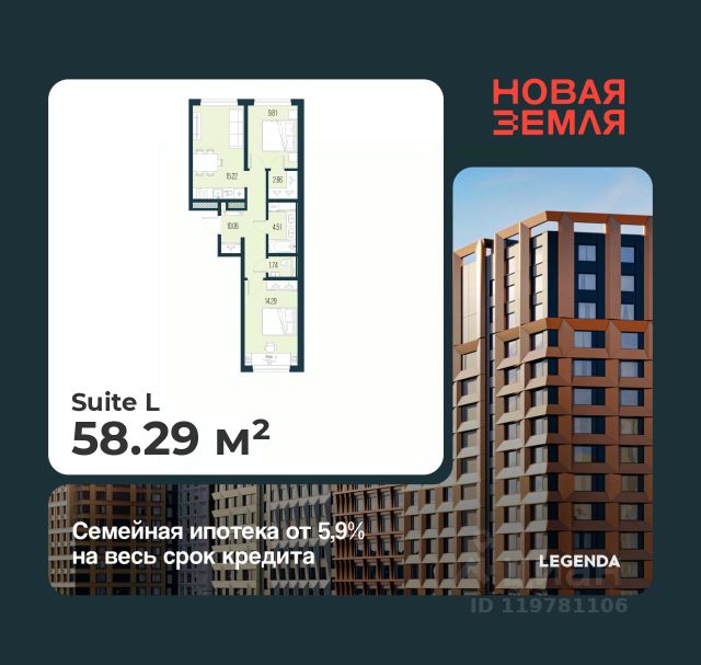 Просторная двухкомнатная квартира с предчистовой отделкой в ЖК "Новая Земля" на 2 этаже. Общая площадь: 59.18 кв.м., жилая: 21.08 кв.м., площадь просторной кухни-столовой: 22 кв.м. Комнаты изолированные, все окна выходят на одну сторону. В квартире один раздельный санузел. Высота потолков 2.85 м. Квартира находится в корпусе 1.8. Дом монолитный, одноподъездный, высотой 15 этажей. На этаже 8 квартир. В подъезде 2 пассажирских и 1 грузовой лифт. Окончание строительства - 4 квартал 2028 года. Оформление сделки по договору долевого участия. Новая Земля — проект LEGENDA в локации морской набережной Васильевского острова, где уже сегодня формируется многообещающее и перспективное место для жизни и инвестиций. Проект состоит из двух очередей, расположенных в непосредственной близости, но имеющих идеологически разный подход к проектированию и ассортиментному предложению. Первая очередь, где квартиры уже в продаже, наполнена компактными функциональными и эстетичными сьютами в комплектации TechnoBox, подходящими для активной аудитории, предпочитающей больше времени проводить в городе. Транспортная доступность обеспечена благодаря близости выезда на ЗСД, который позволяет быстро добраться как до центра города, так и до других районов Санкт-Петербурга. Архитектурная концепция проекта задает новый стандарт для этой локации. Дизайн фасадов, большие окна без импостов, современные инженерные решения — всё это создаёт атмосферу комфортного и эстетичного пространства, отвечающего самым высоким требованиям. В проекте представлена новая линейка планировочных решений, созданных по принципам отельного проектирования. Сьюты от LEGENDA — это уникальная работа с пространством, сочетающая сверхфункциональность и удобство, чистоту линий и стилистический минимализм. Планировочные решения в рамках первой очереди проекта будут поделены на несколько сегментов, отличающихся размерами, функциональной наполненностью и отвечающих потребностям различных жителей проекта.