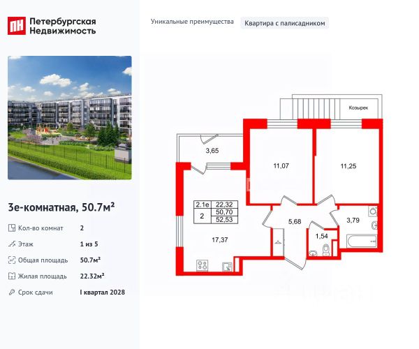 Продается уютная 2-комнатная квартира от застройщика в жилом комплексе "Парадный ансамбль" в престижном Московском районе. До метро можно добраться на транспорте всего за 20 минут. Удобная, классическая, функциональная европланировка, большая кухня-гостиная 17.4 м², просторная прихожая 8.8 м². Общая площадь квартиры - 52.88 м², жилая 22.04 м², высота потолка 2.77 м. Квартира продается с отделкой "Норд Лайн серый". Что особенного в ЖК "Парадный ансамбль"? • Инновационный Лицей Setl с оригинальной архитектурной концепцией и уникальной образовательной средой • Масштабное малоэтажное строительство в престижном Московском районе • Рекреационные зоны: парадный парк в центре квартала, ручей с собственной набережной, центральная площадь, ресторанный комплекс и пешеходный бульвар • Фасады из керамогранита и кирпича с яркими и акцентными входными группами • Две самые большие площадки Setl Kids и Setl Sport • Уникальные квартиры.High Flat на последних этажах, палисадники у квартир на первом этаже, семейные секции, квартиры с саунами и окном в ванной