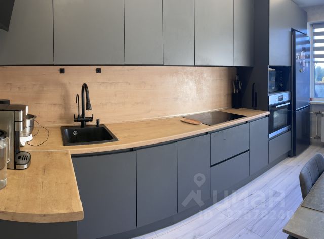 Просторная кухня 10,2 м² оснащена качественным встроенным гарнитуром с отличной фурнитурой с доводчиками и техникой, которая останется покупателю, как и вся мебель в квартире.