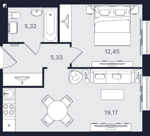 Есть возможность установки кондиционера. В санузле подключена вся сантехника, включая раковину со смесителем, также есть место для установки стиральной машины(предусмотрен слив). Апартаменты полностью готовы к собственному проживанию или сдаче в аренду через Управляющую компанию или самостоятельно. Останется только обставить мебелью.