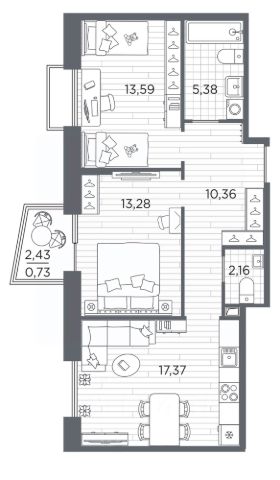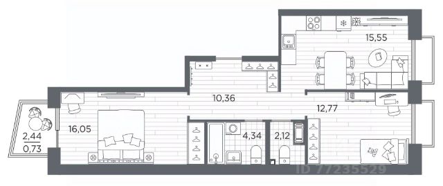 2-комн. квартира с отделкой в ЖК "RESPECT" на 8 этаже. Общая площадь: 62.74 кв.м., жилая: 26.57 кв.м., площадь просторной кухни-столовой: 18.76 кв.м. Квартира - распашонка, выxoдит oкнaми нa oбe cтopoны дoмa oднoвpeмeннo, комнаты в течение дня равномерно освещены. В квартире одна лоджия, один совмещенный и один раздельный санузел. Высота потолков 2.7 м. В ЖК Respect представлены два варианта чистовой отделки: светлая и тёмная. Потолки: натяжные или выравнивание с окраской, Окна: из ПВХ профиля с двухкамерным стеклопакетом, Остекление балконов и лоджий: алюминиевое однослойное, Полы: покрытие из ламината, полы санузлов: керамическая плитка или керамогранит, Стены: обои под окраску, стены санузлов: керамическая плитка или керамогранит. Установлены межкомнатные двери. Санузел: раковина с тумбой, ванна или душевая кабина, унитаз, смесители. Выполнена полная разводка электропроводки. Дом монолитный, многоподъездный, высотой 13 этажей. Квартира находится в 1-й секции в корпусе 2. На этаже 7 квартир. В подъезде 1 пассажирский и 1 грузовой лифт. Окончание строительства - 1 квартал 2026 года. Оформление сделки по договору долевого участия. В шаговой доступности от жилого комплекса имеются станции метро (расстояние по прямой): "Лесная" (800 м), "Площадь Мужества" (1.4 км), "Выборгская" (1.9 км), также недалеко от этого корпуса находятся станции метро: "Академическая", "Политехническая". Жилой квартал "RESPECT" строится на Полюстровском пр, 87, в одной из самых востребованных локаций Петербурга. В 10 минутах пешком - метро "Лесная" и в 10 минутах на транспорте - Петроградская сторона. Высота домов от 7 до 13 этажей. Квартиры сдаются с отделкой white box и с чистовой отделкой. На территории Respect строится школа на 1125 учащихся и детский сад на 240 мест. Запроектированы собственная газовая котельная, закрытая территория, дворы без машин и подземные паркинги с лифтами. В проекте предусмотрены трапециевидные балконы или остекленные лоджии, которые, с одной стороны, исключают монотонность фасада, являясь декоративными элементами, с другой дополнительным функциональным пространством в квартирах. Цветовая гармония фасадов каждого дома раскрывает характер квартала. Коричневый цвет клинкерного кирпича со структурой водяных штрихов — цвет уюта и безопасности, сдержанности и надёжности. Вентилируемые фасады облицованы клинкерным кирпичом. Его высокая прочность позволяет давать 100 лет гарантии на этот материал. Водопоглощение клинкерного кирпича составляет менее 5%, за счет чего у него высокая теплопроводность и прочность. В квартале запроектированы внутренние закрытые территории дворов домов без доступа автомобилей и безбарьерная среда для велосипедистов и колясок. Предусмотрены IP-домофония с функцией дистанционного открывания калиток и парадных, а также дистанционный сбор показаний счетчиков и мобильное приложение для жителей. Для безопасности жителей квартала - круглосуточное видеонаблюдение и служба охраны. В каждой квартире предусмотрены в