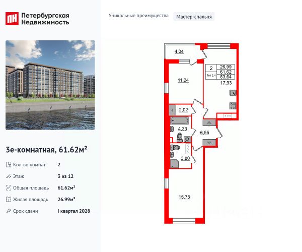 Продается уютная 2-комнатная квартира от застройщика в жилом комплексе "Setl Ривьера" в активно развивающимся Невском районе. До метро можно добраться на транспорте всего за 10 минут. Сауна в ванной комнате. Расслабьтесь и восстановите силы, как в СПА-салоне. Уникальная, функциональная европланировка, большая кухня-гостиная 16.08 м², просторная прихожая 8.5 м². Общая площадь квартиры - 59.33 м², жилая 23.51 м², высота потолка 2.77 м. Квартира продается с отделкой "NORD LINE WHITE ВК NEW". Что особенного в ЖК "Setl Ривьера"? • Первая береговая линия Невы. 5 км до центра Петербурга • "Активити парк" - пространство для занятий спортом и отдыха. "Ривьера парк" с променадом и панорамной ротондой • Масштабные дворы 10 000 кв.м. с авторским ландшафтным дизайном • Двухуровневые единые входные группы • Видовые квартиры с террасами, каминами и саунами