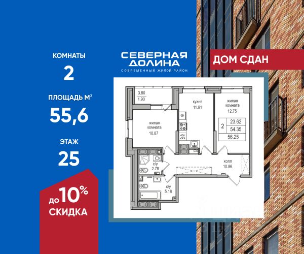 Продается 2-комнатная квартира, 55,9 кв.м. по адресу: Россия, Санкт-Петербург, ул. Заречная, д. 54. Квартира от Застройщика.Возможна покупка квартиры по льготным и специальным ипотечным программам. Цена указана с учетом применения скидки. Условия и актуальные ставки уточняйте у менеджера отдела продаж. Жилой комплекс "Северная долина" расположен в Выборгском районе Санкт-Петербурга, в шаговой доступности от метро "Парнас". Рядом с комплексом проходят магистрали городского значения - КАД, Выборгское шоссе и проспект Энгельса. Качественная отделка квартиры помогает существенно сократить вложения сил, времени и средств в новое жилье. Мы предусмотрели разные варианты отделки, каждый из которых вы можете персонализировать, ориентируясь на свои личные предпочтения в дизайне интерьера - Оптима, Комфорт, предчистовая отделка White Box и черновая отделка. Жилой район "Северная долина" - это место, где уже вовсю кипит жизнь. Здесь спешат на работу, пьют латте на лоджии, ходят в спортзал, бегают на переменах и охотно посещают детский сад. Вы находитесь в балансе городского движения и домашнего комфорта. В шаге от дома Жизнь в наших кварталах удобная, современная и безопасная. Вместе с корпусами активно развиваются коммерческие пространства. На территории комплекса функционирует более 200 объектов торговли и услуг. Инфраструктура Детские сады и школы оснащены танцевальными и музыкальными залами, бассейнами и необходимым инвентарем для занятий. На территории оборудованы игровые и спортивные площадки с безопасным покрытием. Также мы сотрудничаем с крупнейшими вузами для организации специальных программ развития учащихся. Продуманное благоустройство "Комфорт в деталях" относится не только к жилым квадратным метрам, но и к территории района в целом. Функциональные детские площадки, зоны для хранения велосипедов, продуманный проект озеленения территории и серия модных арт-объектов. Подробнее о проекте и условиях покупки уточняйте у менеджера отдела продаж. Продается 2-комнатная квартира в ЖК Северная долина в Санкт-Петербурге.