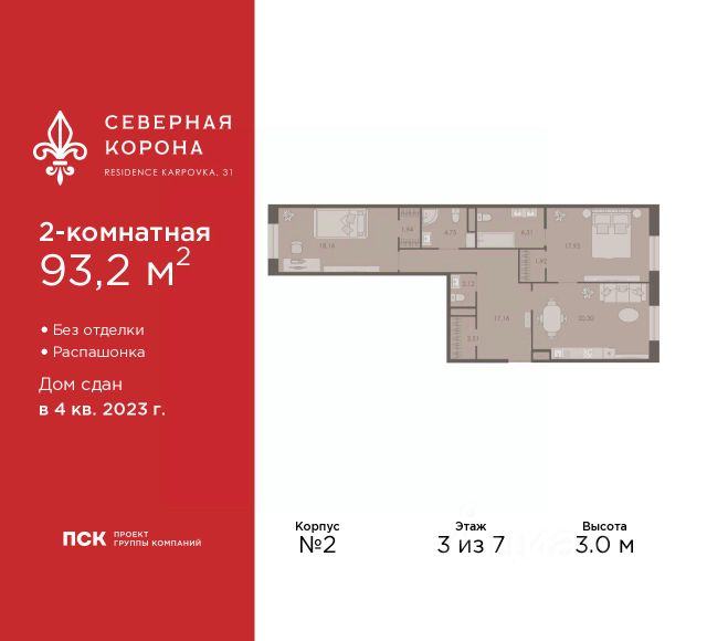 Продается 2-комн. квартира в ЖК "Северная корона" на 7 этаже. Квартира без отделки, после выдачи ключей можно делать ремонт. Общая площадь: 65.3 кв.м., жилая: 26.05 кв.м., площадь просторной кухни-столовой: 21.74 кв.м. Квартира угловая, идеально подойдет любителям тишины и панорамных видов. В квартире один совмещенный и два раздельных санузла. Высота потолков 3.0 м. Квартира находится в корпусе 6. Дом монолитный, одноподъездный, высотой 8 этажей. На этаже 6 квартир. В подъезде 1 грузовой лифт. В настоящее время строительство окончено, дом сдан в 4 квартале 2023 года. Оформление сделки по договору купли-продажи. В шаговой доступности от жилого комплекса имеются станции метро (расстояние по прямой): "Петроградская" (500 м), "Чкаловская" (1.3 км), "Горьковская" (1.7 км), "Чёрная речка" (1.7 км), также недалеко от этого корпуса расположены станции метро: "Чернышевская", "Спортивная". Премиальный жилой комплекс "Северная корона" расположился в парадной части Петроградской стороны на пересечении ее главного проспекта — Каменноостровского и набережной реки Карповки. Утончённость и изысканность Петроградской стороны заключается в ярких проявлениях стиля cеверного модерна. Архитектура премиального дома "Северная корона" — это современное воплощение и новое развитие архитектуры северного модерна. Особенность и уникальность дома в его протяженности вдоль реки Карповки. Фасад исключает монотонность, линии интегрированы в канву курдонера и внутренних общественных пространств, обращённых как в сторону Каменноостровского проспекта, так и Иоановского монастыря. Все квартиры в полной мере можно назвать видовыми они открыты историческому окружению и ландшафтной архитектуре. Что дарит владельцам единственные в своем роде захватывающие виды. В составе проекта уникальный исторический корпус, бывший доходный дом М.К. Покотиловой. Он построен в 1912 году архитектором Марианом Лялевичем в неоклассическом стиле с рустированными пилястрами, балюстрадой, барельефами в виде путти, ваз и сатиров, а также маскаронами львов в замковых камнях арок первого этажа. Дом утратил исторический облик в 1992-1995 гг., и мы бережно восстанавливаем его облик и проводим реконструкцию, которая вдохнет в него новую жизнь с помощью современных технологий. Этажность: 4 - 9 этажей. Дом СДАН. Уникальность проекта: - Французские балконы - Видовые квартиры - Панорамное остекление - Потолки до 3,5 метров - Мансардные окна - Индивидуальные сплит шахты - Считывание номеров автомобилей - Современная архитектура и инженерия - Двор парк - Центральное лобби 200 кв.м. #2mZuo6