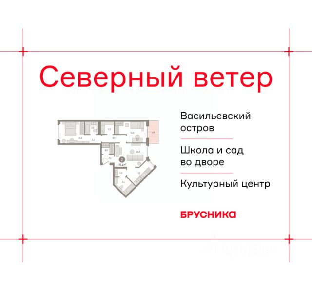 Спешите оформить бронирование по акционной цене! Предложение ограничено! Стоимость квартиры указана со скидкой, ваша экономия составит 4,250,000 RUB. Звоните, мы вам все подробно расскажем! Двухкомнатная квартира от застройщика с предчистовой отделкой в ЖК "Северный ветер" на 4 этаже. Общая площадь: 60.12 кв.м., жилая: 21.3 кв.м., площадь просторной кухни-столовой: 22.3 кв.м. Квартира угловая, идеально подойдет любителям тишины и панорамных видов. В квартире одна лоджия, один совмещенный санузел. Высота потолков 2.98 м. Дом монолитный, многоподъездный, переменной этажности, от 8 до 15 этажей. Квартира находится в 7-й секции высотой 9 этажей в корпусе 2-2. На этаже 7 квартир. В подъезде 1 пассажирский и 1 грузовой лифт. Окончание строительства - 4 квартал 2028 года. Оформление сделки по договору долевого участия. В основу концепции проекта "Северный ветер" легла идея деления квартала на шесть кластеров — активный городской, тихий природный, спортивный, семейный, культурный и рекреационный. Внутри каждого кластера будут организованы разные по характеру площади со своим назначением. Все их свяжет кольцевой бульвар, соединенный с большим парком и сопровождаемый водными аллеями по периметру всего квартала. Внешний облик "Северного ветра" вдохновлен скандинавским функционализмом и финским модернизмом, которым присущи лаконичные формы, динамичные разноуровневые объёмы, ритм окон, балконов и террас, сочетание натуральных текстур, а также единство экстерьера и интерьера. Дворы мы организовали на стилобатах домов. За счёт этого они приподнялись над улицей, стали еще более приватными и безопасными. Для тех, кому двор на стилобате кажется слишком приземленным, мы создали особенные зеленые террасы с великолепным видом на залив. Они появятся на крыше дома, в котором расположен дом культуры. Мы разделили лобби на два типа — большие (одно на каждый дом) и компактные (на каждую секцию). Для создания интерьеров лобби и холлов мы используем материалы природных оттенков, текстуры дерева и камня, матовые поверхности. В большие открытые пространства запускаем много естественного света, а витражное остекление органично связывает помещения с ландшафтом. В квартале спроектировано более 65 типов планировочных решений. Это значит, что любой жизненный сценарий может быть здесь реализован. #ZMBsVu