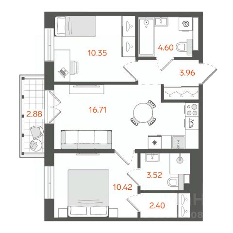 Продается 2-комнатная квартира 203 в жилом проекте бизнес-класса в Адмиралтейском районе