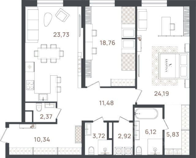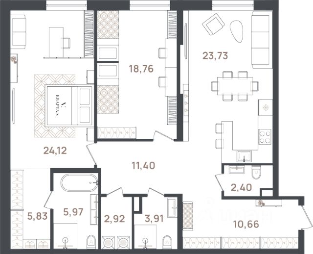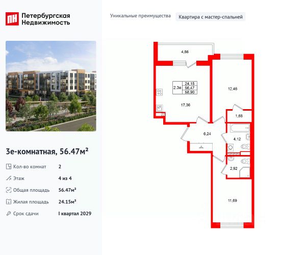Продаётся 2-комнатная квартира в строящемся доме (Корпус 3), срок сдачи: II-кв. 2026, общей площадью 54.61 кв.м., на 3 этаже. Новый жилой комплекс "Новый дом" от застройщика "Графит" расположен по адресу: Россия, Санкт-Петербург, Пушкин, Новая улица, 20А