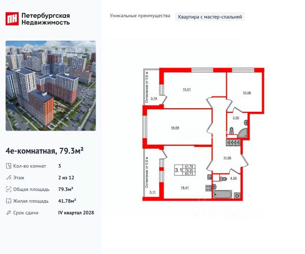 1-02; Предлагается к продаже отличная, просторная, трехкомнатная квартира площадью 99,7 м ² на третьем этаже четырехэтажного кирпичного дома, 1954 года постройки, расположенного по адресу г.Колпино, улица Октябрьская, дом 17/3.