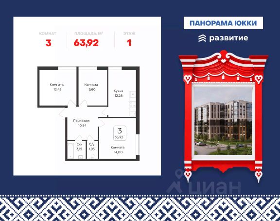 Продается 3-комнатная квартира 63,92 кв.м. на 1 этаже. В продаже квартира в жилом комплексе комфорт-класса "Панорама Юкки". Проект расположен во Всеволожском районе, в деревне Лупполово — всего в 9 км от КАД и около 2530 минут до станций метро "Парнас", "Проспект Просвещения" и "Озерки". Локация сочетает природное окружение и доступность города: жилой комплекс находится среди парков, озёр и экотроп, вдали от шумных дорог. Это спокойный загородный ритм жизни — без отказа от городской инфраструктуры. Дом состоит из 6 секций высотой 9 этажей с благоустроенной территорией, озеленением и приватным двором. Проект реализует федеральный застройщик ГК "Развитие". Транспортная доступность На автомобиле: • 25 мин до метро "Парнас" и "Проспект Просвещения" • 9 км до КАД • 15 минут до ТРЦ "Китай-город" • 20 минут до Сертолово Архитектура Современный жилой дом с лаконичной архитектурой и увеличенными окнами. Из квартир открываются виды на северную природу и благоустроенную территорию без индустриального окружения. Планировочные решения Более 40 вариантов планировок площадью от 22 до 74 м². Доступны варианты с просторной кухней, двумя санузлами и гардеробными комнатами. Во всех квартирах есть балконы или лоджии с панорамным остеклением, идеально подходящие для отдыха, работы, занятий спортом или любования природой Отдельный формат — квартиры с приватными террасами на последних этажах. Все квартиры сдаются с предчистовой отделкой. Благоустройство -закрытый двор без машин, -ландшафтное озеленение и прогулочная аллея, -детские и спортивные площадки для разных возрастов, -зоны отдыха и общения, -мягкая вечерняя подсветка, -безбарьерная среда, -на первых этажах подъездов есть места для хранения и колясочные, -парковка по периметру комплекса. Окружение -северные леса, экотропы, пляжи и зоны отдыха, -Лахтинский парк с прогулками, рыбалкой и активным отдыхом, -горнолыжные комплексы и загородные активности в доступности, -супермаркеты "Дикси", "Магнит", кафе — в шаговой доступности, -торговые центры, аптеки, больница, медцентр и фитнес — в Сертолово (1020 минут), -крупные ТЦ у КАД: "Мега Парнас", "Гранд Каньон", "Китай-город", -начальная школа, детский сад и Монтессори-центр — рядом, -до новой школы — организован школьный автобус.