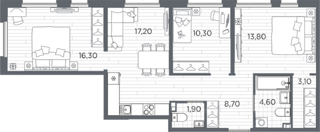 3 комнатная квартира , 10 минут пешком от м. Московская