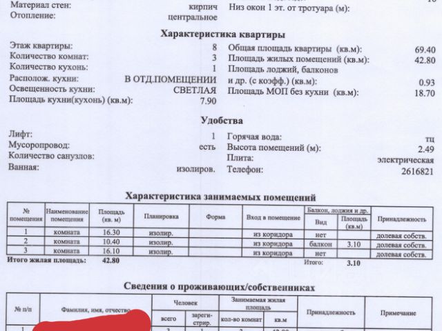 Объект: доля в 3-комнатной квартире (23/100), бывшая кухня, переоборудованная в студию.