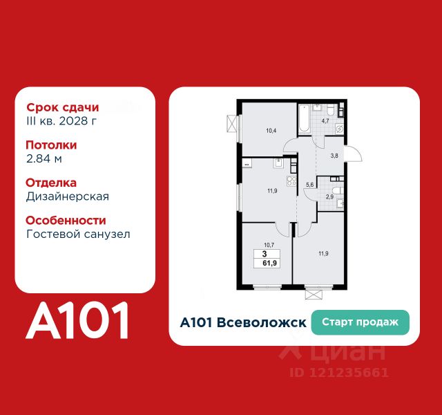Продается 3-комн. квартира на 2-м этаже в строящемся проекте комфорт-класса GloraX Новоселье. Общая площадь лота составляет 58,27 кв. м, из которых 30,69 кв. м отведено под жилую и 13,94 кв. м под кухонную зону. Номер квартиры - 124 Преимущества квартиры: - Квартиры комфорт-класса с чистовой отделкой в двух цветовых гаммах на выбор - Зеленый район, 5 мин. до Гореловсого лесопарки, 10 мин. до Шунгеровского заказника - 7 мин. до КАД, 16 мин. до ЗСД - 864 м/м на открытой стоянке - Благоустроенный собственный прогулочный бульвар - Закрытые дворы с видеонаблюдением - Детские площадки с геопласткой и бизиборадми - Сад и школа в шаговой доступности - Спортивные площадки и вело-дорожки - Коммерческие помещения на 1 этажах GloraX Новоселье — новый проект комфорт-класса на юго-западной границе Санкт-Петербурга и Ленинградской области. Близость к зеленым зонам Гореловского лесопарка и природного Шунгеровского заказника, а также пешеходный многофункциональный бульвар в центре квартала — идеальное место для тех, кто ценит природу и тишину, при этом не готов отказываться от благ современной инфраструктуры. Застройка осуществляется в рамках единой концепции, предусматривающей не только создание комфортного жилья, но и формирование собственной внутренней благоустроенной среды. Территория каждого двора разделена на зоны отдыха, досуга и игровые площадки с учетом возраста и потребностей детей и взрослых создает неповторимую атмосферу, заряжающую энергией на новые свершения. Это проект, в котором спокойно во всех отношениях. Живите на природе, но с комфортом мегаполиса. Проведите теплые дни в Гореловском лесопарке. Познакомьте детей с историей в Стрельне, Петергофе или Красном селе. Они разположены в 30 минутах от проекта. До ж/д станции "Сергиево" 11 минут на автомобиле, до метро Проспект Ветеранов 20 минут, КАД 7 минут, ЗСД 16 минут. В шаговой доступности остановка общественного транспорта. Рядом с проектом будут построены школа и детский сад. Здесь все создано для максимального комфорта каждого жителя. Приватное пространство внутреннего двора с беседками для работы и отдыха, зеленый двор с уютным многоуровневым освещением, детскими эко-площадками и спортивными workout создает неповторимую атмосферу, заряжающую энергией на новые свершения. Цена указана при 100% оплате или стандартной ипотеке. Узнайте подробности в Отделе продаж. Купить 3-комнатную квартиру площадью примерно 60 м2 (кв.м.) в Ленинградской области.