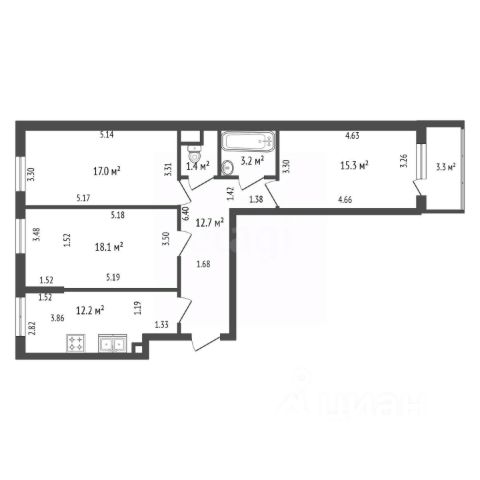 В квартире три комнаты и два отдельных санузла, что особенно удобно для семьи.
