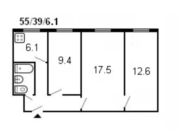 Три полноценные комнаты правильной формы: 11 кв.м + 12 кв.м +15 кв.м